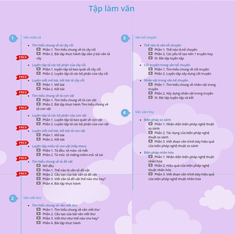 ‼ Hệ thống bài giảng dễ hiểu, hấp dẫn với những ví dụ minh họa và bài tập thực hành là những truyện ngắn hấp dẫn, ý nghĩa, thông minh và hài hước hoặc những câu văn, đoạn văn miêu tả hay đem lại niềm yêu thích môn tiếng Việt cho học sinh tiểu học